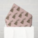 This Easter gift wrap has a hand watercolored chocolate bunny with a pink bow on a pink background.