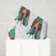 Le Noël Motif du chien de Basset Hound comprend une belle aquarelle de Basset Hound avec un capot de Noël vert avec une étoile jaune sur le dessus et arrière - plan avec des étoiles colorées d'aquarelle.