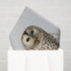 Un hibou européen sur un bouleau avec un cachet français et un design bleu orné dans l'arrière - plan. Utilisez pour vos projets de découpage à thème oiseau.
