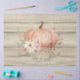 Poids lourd et papier mouchoir surdimensionné est exceptionnel pour le découpage de meubles, l'art mural ou l'emballage cadeau. "Chute florale avec Citrouille dans un orange brûlé muet, avec écriture manuscrite éphémère découpage papier de papier de tissus." Il s'agit d'un plan horizontal d'un citrouille aquarelle avec des fleurs d'ivoire et de rose roux poussiéreux et de feuillage de chute de couleur terreuse sur un arrière - plan rustique de couleur claire peint patiné récupéré en planches de grange en bois. Tout l'art a été peint en aquarelle par Audrey Jeanne Roberts, artiste et designer de renommée internationale, copyright.