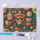Cinco de Mayo. Papier de tissu motif de dessin animé mexicain en noir, jaune, orange, rouge, vert.