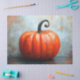 Un tableau rustique vintage d'un citrouille orange vif avec une tige de curling contre un arrière - plan texturé.