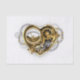 Coeur steampunk mécanique, volumétrique, avec manomètre, acier et or sur arrière - plan blanc. Style Steampunk.