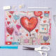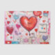 Tissu papier avec un motif fantaisiste. Doodles et gribouillis style Scrapbook. Coeurs rouges et roses et diverses lettres et enveloppes éparpillées partout.