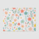 This floral-printed tissue paper features a watercolor illustration. The cheerful flowers display a variety of colors, including yellow, pink, and blue, set against green leaves on a white background. It is suitable for gift wrapping or decoupage crafts.