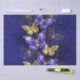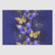 Composition des luxueux papillons saphir et bijoux en or sur arrière - plan bleu texturé.