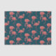 Motif vectoriel avec flamants dessinés à la main en couleur corail vivant sur arrière - plan bleu foncé.