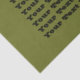 Cadeau Cadeau Bourrage Papier papier avec modèle personnalisable Votre texte Ici la typographie motif répétée imprimée avec l'illustration arrière - plan couleur vive vert et sélectionner la collection de produits par TheFabricSeal impression sur demande shop à Zazzle.com #ZazzleMade https://www.zazzle.com/store/thefabricseal Lorsque vous avez eu la peine de trouver le cadeau parfait, assurez-vous qu'il a la présentation parfaite. Donnez à vos cadeaux une touche personnelle avec du papier de tissu imprimé sur mesure. Offrir des cadeaux est maintenant divertissant et amusant! Magasinez également nos cartes de voeux, cartes postales, papier mouchoir et papier d'emballage, sacs cadeaux, rubans cadeaux et étiquettes cadeaux. Notre vaste sélection toujours croissante de couleurs solides à l'allure superbe dans la boutique devient l'un des meilleurs vendeurs, en particulier avec l'accès personnalisable sur les produits qui sont associés à Zazzle.com. La couleur de l'olive est un vert foncé aux teintes jaune et marron. La couleur de l'olive est polyvalente avec des couleurs neutres comme le beige, le kaki et le marron. Ces tons naturels offrent une palette feutrée mais sophistiquée utilisée dans la mode, la décoration et le design. Le vert olive est un vert terreux et muet, penché vers le jaune, souvent associé à la paix, à l'harmonie et à la nature en raison de sa ressemblance avec la couleur des feuilles d'olivier et des fruits. Consultez nos 400 + grandes collections de produits et de modèles originaux de notre boutique de produits Flagship Select et Neckties Store. Tout y compris les options de personnalisation. Personnalisez avec votre propre design, monographie, nom, motif, photo, citation ou slogan. Merci beaucoup pour choisir et faire du shopping avec nous. Nous vous sommes reconnaissants de votre soutien. Profitez de votre expérience d'achat. Commandez aujourd'hui .