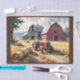 Papier Mousseline Countryside rural landscape with barn and tractor