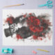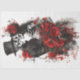 In the artwork “Eternal Embrace in Bloom,” two skeletons are depicted in a tender moment, their bony frames adorned in elegant attire. The masculine figure, donning a top hat, and the feminine figure, with floral decorations in her hair, are intimately facing each other as if locked in an eternal dance. The flourish of red flowers that surrounds them adds a romantic and vibrant touch, symbolizing a love that transcends the mortal realm. This piece beautifully captures the idea that affection and connection can persist even after life, making it a poignant addition to any collection that celebrates the themes of undying love and the aesthetic of the macabre.