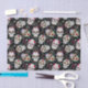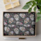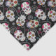 Papier de tissu coloré pour les festivités du Jour des Morts, avec une variété de crânes de sucre décoratifs avec des accents de fleur et tourbillonnants sur un arrière - plan noir en option. Si vous préférez, changez de couleur arrière - plan. Cherchez ID725 pour voir d'autres choix de couleurs et produits avec ce motif amusant.