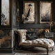 Papier Mousseline Cravate noire, Elegant Portrait Femme & Floral