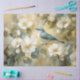 Papier Mousseline Crème Bleue Fleurs blanches Peinture Découpage