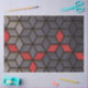 Cubes rouges noirs gris : laser d'art géométrique gravé sur bois, peint avec des encres d'alcool.