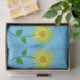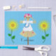 Cute Blonde Pigtails Scarecrow avec de grands tournesols, pour personnaliser en changeant de nom sur votre couleur arrière - plan