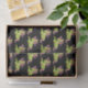 Papier de tissus avec une image répétée d'une licorne de style Frankenstein. Couleurs violettes et vertes. Éffrayant mignon.