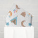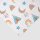 Ce papier de tissu mignon est polyvalent et peut être utilisé pour donner des cadeaux ou des projets artistiques et artisanaux. Le design comprend une tente tipi boho, montagne, lune avec plumes, arc-en-ciel et étoiles sur un arrière - plan blanc.