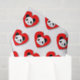 Un joli ours en panda de style dessin animé au coeur rouge. Papier de tissu personnalisé. Idée enveloppante cadeau.