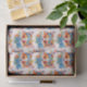 Papier de tissus avec l'illustration d'un adorable portrait de renard avec une couronne et un collier floral bleu et orange.