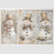 Papier Mousseline Cute Shabby Chic Snowmen Beige AL8 Découpage