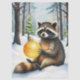Papier Mousseline Cute Winter Raccoon with Gold Ornament Christmas