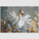 Papier Mousseline Cygne couronné d'or avec fleurs jaunes Découpage