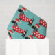 Chiens noirs Dachshund en pulls à pois rouges et blancs avec casquettes de style Père Noël sur un arrière - plan aqua rétro - le motif de vacances idéal pour amoureux de les chiens.