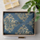 Conception de damas d'or dans un motif de type treillis sur un arrière - plan bleu profond. Parfait pour l'artisanat, le découpage et l'emballage de cadeaux. Assurez-vous de retirer le sac cadeau correspondant!