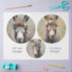 Add a touch of pastoral charm and playful elegance to your creative projects with this delightful set of three floral donkey designs. Each circular print features a uniquely illustrated donkey adorned with a crown of wildflowers, set against soft pastel backgrounds with subtle script accents.