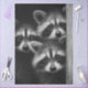 three raccoons peek wooden wall, RHDesigns woodland animal art paper, curious raccoons dark background print, rustic raccoon mixed media supply, playful raccoon crafting decor design, masked raccoon trio decoupage art, expressive raccoon faces forest scene, cozy raccoon wood peek image, whimsical raccoon nature paper bundle, charming raccoon trio crafting print