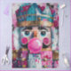 bubblegum nutcracker artwork, pink and teal decoupage paper, whimsical holiday crafting, heart-eyed nutcracker design, RHDesigns decoupage, festive mixed media panel, gold crown nutcracker, playful Christmas collage, textured winter background, handcrafted furniture art, bold seasonal paper, cheeky nutcracker with bubblegum, holiday tray design, layered whimsical imagery, magical winter crafting paper, joyful festive decor, pop art nutcracker panel, vibrant holiday DIY project, regal nutcracker with rosy cheeks.