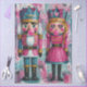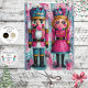 nutcracker couple artwork, bubblegum nutcracker design, pink and teal decoupage paper, whimsical holiday crafting, heart-eyed nutcracker girl, RHDesigns decoupage, festive mixed media panel, gold crown nutcracker, playful Christmas collage, textured winter background, handcrafted furniture art, bold seasonal paper, cheeky nutcracker with bubblegum, holiday tray design, layered whimsical imagery, magical winter crafting paper, joyful festive decor, pop art nutcracker duo, vibrant holiday DIY project.