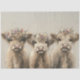 Cette image représente trois charmantes vaches Highland côte à côte, chacune ornée d'une couronne florale vibrante. Leur fourrure bouclée leur donne une présence douce et attachante, et les couronnes, fabriquées à partir de roses, marguerites et autres fleurs délicates, ajoutent une touche fantaisiste, presque royale. Les expressions des vaches sont calmes et expressives, donnant à l’oeuvre une personnalité chaleureuse et accueillante. Contre un arrière - plan beige texturé, le détail et la couleur des vaches et des fleurs se distinguent par leur beauté. L'ensemble de la composition dégage un équilibre enchanteur entre charme rustique et imaginaire artistique, parfait pour le décor de ferme, les murs de galeries ou les collections d'été ludiques. Vaches couronnées florales de charme, Vaches de Highland avec fleurs, Art animal de ferme rustique, Décor de ferme Boho inspiration, Impression murale de campagne, Portrait animal de charme pastoral, Peinture de vache inspirée de la nature, Elégance rustique aux tons doux, Trio de vaches de couronne florale, Charme de campagne accent maison accent.