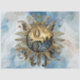 L'oeuvre dépeint une scène céleste fascinante. Un croissant de lune, rendu dans des tons riches de brun et d'or, se distingue par des détails complexes et une présence sereine. Jouxtant la lune, il y a un soleil vibrant, qui brille dans les tons jaune et orange vifs, qui dégage des rayons dynamiques. Ces éléments célestes sont entourés de motifs tourbillonnants et d'étoiles scintillantes, créant un ciel nocturne enchanteur rempli de profondeur et de mouvement. L'arrière - plan bleu profond améliore la vitalité des tons dorés, donnant vie à la composition céleste dans une harmonie captivante face sereine de lune croissant dorée, détails célestes tourbillonnants complexes, rayons dorés radieux, harmonie cosmique ciel nocturne sombre, composition artistique céleste enchanteresse, équilibre céleste des tons dorés vibrants, cosmologie motif tourbillante élégance, décoration d'inspiration céleste, harmonie de jour et de nuit captivante, élégante esthétique céleste cosmique.