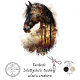 Harmonie de la nature et du cheval" Cette oeuvre numérique fusionne magistralement le profil d'un cheval avec un paysage forestier serein de double exposition. Sur le côté gauche, la tête du cheval est présentée avec des caractéristiques détaillées et réalistes, capturant sa majesté et sa force. Le côté droit de la tête du cheval se transforme en une scène de forêt luxuriante, présentant des arbres avec un feuillage d'automne vibrant et un soleil couchant jetant une lumière chaude et dorée. Le mélange du cheval et de la forêt crée une composition harmonieuse et frappante visuellement, symbolisant un lien profond entre les animaux et la nature. Harmonie de la nature et du cheval, double exposition cheval, cheval et la fusion nature, l'art numérique de cheval, paysage forestier serein, profil de cheval réaliste, feuillage d'automne, coucher du soleil, portrait de cheval artistique, oeuvre d'art sur le thème de la nature, cheval et arbres, cheval majestueux et forêt, art numérique inspiré de la nature, scène de cheval et de coucher du soleil.