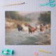 Apportez du mouvement et de la beauté naturelle à vos métiers avec du papier de tissu de découpage River Run. Ce dessin montre des chevaux galopant à travers une rivière peu profonde, éclaboussant de l'eau autour de leurs jambes, rendus en noir gras, blancs et bruns chauds. L'arrière - plan brumeux et verdoyant met l'accent sur l'énergie et l'esprit sauvage du troupeau tout en gardant l'accent sur le mouvement dynamique des chevaux. Parfait pour l'emballage cadeau, le scrapbooking et les projets do-it-yourself, ce papier tissulaire ajoute une touche vivante et d'inspiration nature à toute création.