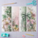 L'image est une oeuvre d'art numérique qui combine des éléments floraux et décoratifs disposés en bandes verticales. Il y a quatre sections verticales, chacune avec une couleur et un design arrière - plans différents. La partie la plus à gauche est agrémentée d'un arrière - plan de citron vert avec trèfle et fleurs roses. La deuxième partie est composée d'un arrière - plan rose avec un mélange de trèfle et de fleurs. La troisième section a un arrière - plan verdâtre avec un grand arc vert au centre. La partie la plus droite comprend un arrière - plan blanc avec un mélange de fleurs, de trèfles et de deux montres de poche en or. L'image est visuellement attrayante grâce à ses détails complexes, ses couleurs vibrantes et son mélange harmonieux d'éléments naturels et décoratifs. OEuvre numérique, éléments floraux et décoratifs, bandes verticales, arrière - plan verdoyant, fleurs roses, trèfles, grand arc vert, arrière - plan blanc, montres de poche or, couleurs vives, détails complexes,