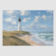 Cette image représente une scène côtière avec un phare debout sur une dune herbacée. L'herbe de la plage est haute, brun doré, et coule doucement dans la brise, recouvrant les dunes qui mènent à la plage de sable. Le sable est doux et s'étire le long du rivage, répondant aux vagues de l'océan qui s'écrasent doucement sur le rivage. Le phare, peint en blanc avec un dessus noir, se dresse comme une balise contre le ciel bleu vif, avec des fenêtres et un balcon près du sommet. Le ciel est parsemé de nuages blancs moelleux, ajoutant à l'atmosphère sereine et pittoresque. L'ensemble dégage un sentiment de tranquillité et de charme côtier, ce qui en fait une parfaite représentation d'une retraite balnéaire paisible. Vue du phare côtier, plage de sable avec dunes, gazon de la plage dorée, scène du phare en bord de mer, tranquillité balnéaire, photographie de paysage maritime, évasion de la rive pittoresque, beauté côtière nautique, phare sur l'océan, horizon de plage paisible