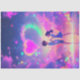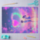 L'image présente une scène enchanteresse et animée d'un couple aimant debout dans une eau peu profonde, se tenant la main et se regardant. L'arrière - plan est un ciel coloré plein de nuages, d'étoiles et de lumières en forme de coeur. Un grand coeur brillant est représenté dans le ciel au-dessus des personnages, avec un sentier de lumière qui le relie à la scène ci-dessous. L'atmosphère est onirique et romantique, avec un mélange de violets, de roses, de bleus et de verts créant une ambiance magique. Cette image saisissante et émotionnellement évocatrice capture un moment tendre entre les deux personnages, ce qui le rend parfait pour les thèmes de l'amour et de la romance. scène animée enchanteresse, personnages tenant main, ciel coloré, lumières en forme de coeur, coeur brillant, atmosphère onirique, moment romantique, couleurs vibrantes, ambiance magique, thème d'amour et de romance, RHDesigns par 2chattychicks.