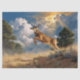 Un tableau dynamique d'un bocal de cerf de Virginie qui saute à travers un paysage pittoresque, parfait pour les amateurs de faune sauvage, projets de décoration rustique, ou découpage d'inspiration nature.