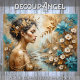 ce design présente le profil d'une belle femme, aux fleurs et feuilles d'or et de bleu, dans une composition luxueuse et raffinée. Choisissez la taille qui correspond à votre vision, ou contactez-nous pour un design personnalisé fait spécialement pour vous. Si vous êtes propriétaire d'un magasin ou revendeur, envoyez-nous un message sur Zazzle ou connectez-vous à travers notre page Facebook DecoupAngel pour explorer des opportunités de collaboration passionnantes avec des avantages uniques adaptés à vous