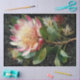 Faites une déclaration avec ce modèle de découpage de fleurs de protéa roses roi. Doté d'une spectaculaire floraison de protéa peinte avec un feuillage vert luxuriant sur un arrière - plan manuscrit foncé, ce papier est idéal pour les feuillets de meubles, les journaux à puces, les maquillages de cart de bar et l'élégante enveloppement cadeau. Chaque ensemble comprend trois draps de taille généreuse pour gérer tout, des petits métiers aux projets de décoration maison audacieux. Copyright Hautegraphique.