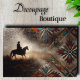 Transformez vos meubles et vos espaces commerciaux avec notre papier de découpage sud-ouest de haute qualité. Ce motif patrimonial présente des motifs géométriques d'inspiration native et une silhouette de cavalier sur un fond argenté. Ce design crée un point focal élégant parfait pour les maisons du sud-ouest, les musées culturels ou les espaces inspirés par les cow-boys.