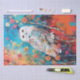 Une chouette enneigée entourée de formes et de couleurs inspirées du pop art. Le hibou blanc se distingue par son arrière - plan coloré de feuilles, de branches d'arbres et d'arrière - plans remplis de brosses. Parfait pour ajouter une pop de couleur à votre projet de découpage.