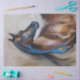 Représentation élégante d'un cheval à travers une peinture à l'huile abstraite avec des couleurs dynamiques et des touches de peinture artistique, exsument force et grâce dans un style art moderne.