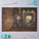 Papier de découpage en goth vintage grungy défoncé avec crâne dans cadre floral ancien, parchemin déchiré, dentelle noire, vieille clé en laiton, portraits encadrés, roses rustiques et damas d'or déchirés. Convient pour le découpage ou l'artisanat.