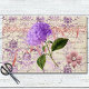 Écriture victorienne inspirée du printemps avec des recouvrements de damas violet brillant, parties scintillant rose, ruban et perle faux avec broche pétale rose, et hydrangée violette. Parfait pour le découpage rustique do-it-yourself printemps.