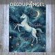 Entrez dans un monde de magie avec ce papier de papier de découpage céleste Unicorne. Doté d'une gracieuse licorne blanche qui parcourt les étoiles d'or et de nuances oniriques de bleu nuit, ce design est parfait pour ajouter une touche d'imaginaire à vos projets créatifs. Idéal pour la décoration de meubles, boîtes, plateaux, objets en bois ou en céramique, il apporte une atmosphère enchanteresse et mystique à vos créations faites à la main.
