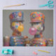 This vibrant pair of painted nutcracker-style figures brings playful energy and modern flair to your holiday crafting. Each character pops with a bubblegum bubble—one pink, one orange—set against a backdrop of multicolored polka dots and splattered paint. Their tall cylindrical hats and exaggerated features blend classic toy soldier charm with street-art whimsy, making this panel perfect for festive trays, furniture art, or layered mixed media projects.