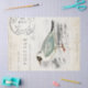 Illustration scientifique française avec un Goéland à tête noire et carte postale et cachet postal sur un arrière - plan parchemin. Idéal pour le découpage !